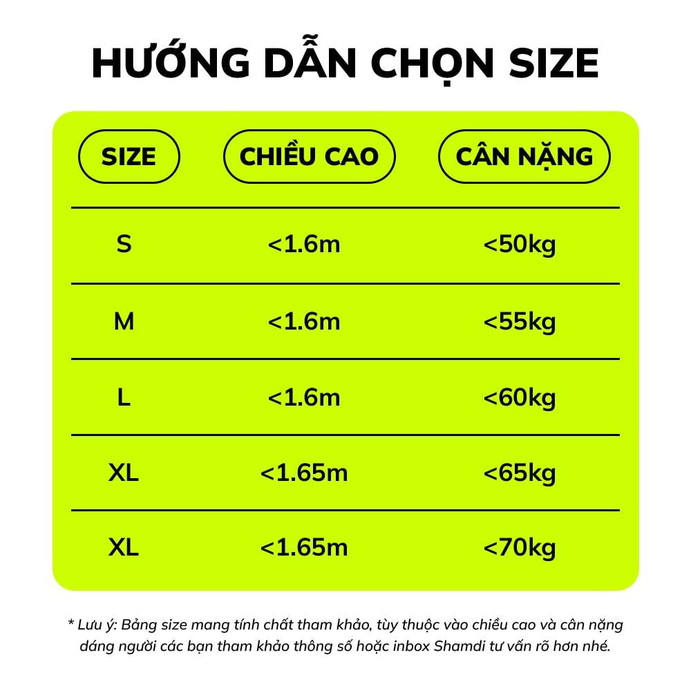 * Lưu ý: Bảng size mang tính chất tham khảo, tùy thuộc vào chiều cao và cân nặng dáng người các bạn tham khảo thông số hoặc inbox Shamdi tư vấn rõ hơn nhé.